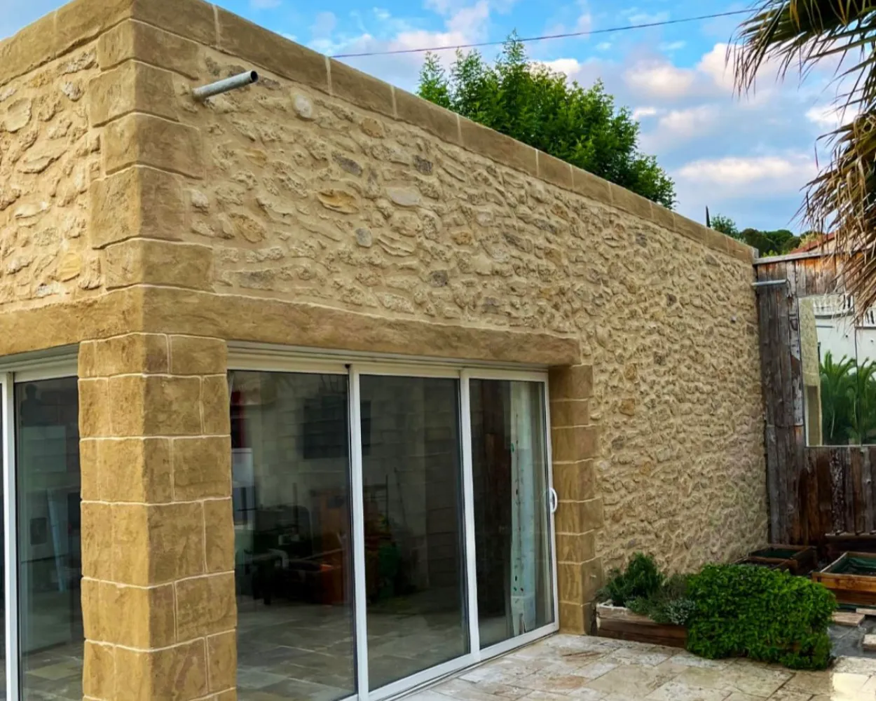 Réalisation d’un mur imitation pierre pour un pool house dans les Alpilles
